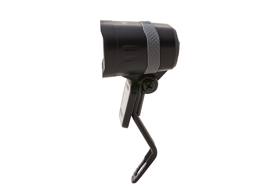 Framlampa för navdynamo med Safe-Stop-funktion, som lyser i 4 extra minuter efter att cyklisten stannat. Perfekt när du fortfarande vill vara synlig för andra trafikanter när du måste stanna vid trafikljus.